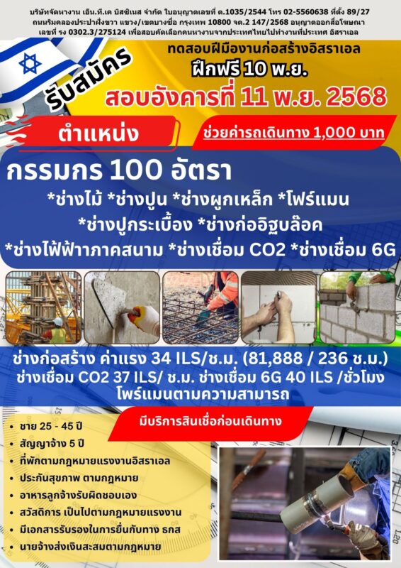 ตำแหน่งงานอิสราเอลที่เปิดเตรียมความพร้อมและตำแหน่งงานที่รับสมัคร